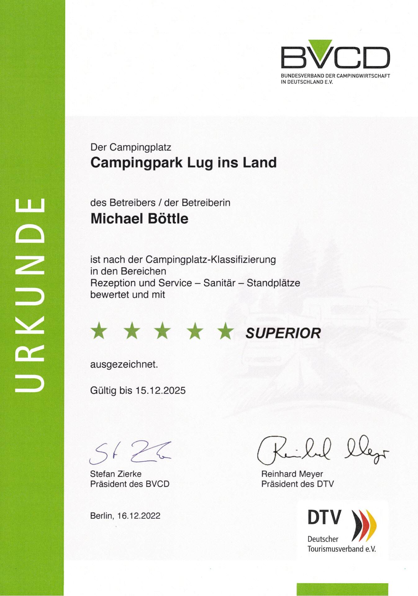 auf unserem 5 Sterne Superior Campingpark Lug ins Land